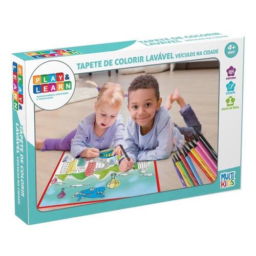 A brincadeira de colorir e desenhar não tem fim com o Tapete Lavável Play & Learn da Multikids!