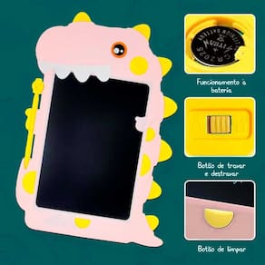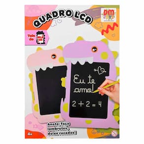 Lousa Educativa - Quadro LCD - Dino Rosa - DM Toys: desenhar e fazer atividades fica mais divertido com o Quadro LCD Dino da DM Toys! As crianças podem desenhar de um jeito completamente diferente e se tornarem verdadeiros artistas e quando terminarem suas obras, basta apertar o botão de apagar, para começar novos desenhos. Detalhes: • O quadro LCD é perfeito para anotar recados, lembretes, fazer diversas anotações • Tem botão de bloqueio para não apagar o que foi escrito • Acompanha caneta e porta-caneta para você guardar e utilizar quando quiser • Funciona à bateria Informações: • Produto: Quadro LCD tela 20,5 cm Dino • Marca: DM Toys • Tipo: Quadro LCD para Atividades • Categoria: Artes e Atividades • Tamanho: 20.5 cm • Conteúdo: - 01 quadro LCD - 01 caneta para quadro LCD • Recomendação: para crianças a partir de 03 anos de idade Especificações: • Referência: DMT6722 • Código de Barras: 7899205967224 • Embalagem (C x A x L): 21 x 29 x 1.5 cm • Embalagem (Peso): 0.198 kg • Composição / Material: Plástico PS, PET • Alimentação: utiliza 01 bateria “CR2025” (incluída) • Registro: 006 249/2023 • Certificado: Órgãos Autorizados - OCP´S (Organismos de Certificação de Produtos) Aviso: • As imagens são meramente ilustrativas • Os pesos, tamanhos e medidas são aproximados • As cores e estampas dos produtos podem ter variações • As informações são de responsabilidade do fabricante ou fornecedor