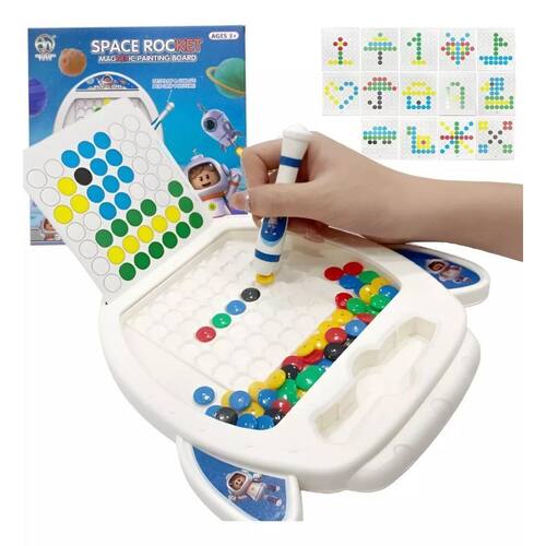 Aqui está o melhor presente do dia das crianças para seu filho a . Benefícios - estimula o desenvolvimento da criatividade ao criar desenhos. - apoio ao melhoramento cognitivo no aprendizado. - promove a coordenação motora fina. - criança aprende a interpretação ao copiar o desenho manualmente. Lousa infantil magnética espacial 14 desenhos o quadro desenho magnético espacial é super divertido, ele tem imãs coloridos e caneta magnética. Você pode fazer vários desenhos, quando terminar é só virar o quadro para começar novamente