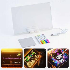 Lousa led interativa com canetas neon Transforme o momento de brincar e aprender em uma experiência mágica com a lousa mágica led ideal para crianças que adoram desenhar, escrever e soltar a imaginação, esse quadro interativo possui iluminação led que realça as cores das canetas neon, criando um efeito incrível no escuro ou em ambientes com pouca luz. Perfeita para estimular a criatividade, a coordenação motora e o desenvolvimento artístico, essa lousa é também uma excelente ferramenta para uso educacional ou decorativo. Com alimentação via cabo usb, é prática, segura e muito fácil de usar. Conteúdo da embalagem 1 lousa mágica com luz led 6 canetas neon coloridas 1 cabo usb 1 flanela para limpeza Características Iluminação led com efeito neon vibrante Superfície reutilizável: desenhe, apague e recomece Ideal para crianças, estudantes, professores ou uso decorativo Pode ser Utilizado como quadro de recados ou para estudos Design leve, portátil e moderno Alimentação prática via cabo usb Especificações Tipo de luz: led colorido Alimentação: cabo usb Material: acrílico + base plástica Idade recomendada: a partir de 3 anos Canetas: 6 cores neon laváveis Limpeza: superfície apagável com flanela Garanta agora mesmo a lousa mágica que une diversão, criatividade e aprendizado em um só produto ideal para presentear e encantar Marca: Não Informado