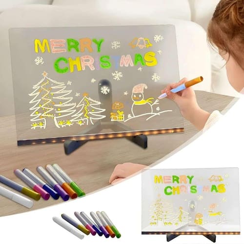 Lousa led interativa com canetas neon Transforme o momento de brincar e aprender em uma experiência mágica com a lousa mágica led ideal para crianças que adoram desenhar, escrever e soltar a imaginação, esse quadro interativo possui iluminação led que realça as cores das canetas neon, criando um efeito incrível no escuro ou em ambientes com pouca luz. Perfeita para estimular a criatividade, a coordenação motora e o desenvolvimento artístico, essa lousa é também uma excelente ferramenta para uso educacional ou decorativo. Com alimentação via cabo usb, é prática, segura e muito fácil de usar. Conteúdo da embalagem 1 lousa mágica com luz led 6 canetas neon coloridas 1 cabo usb 1 flanela para limpeza Características Iluminação led com efeito neon vibrante Superfície reutilizável: desenhe, apague e recomece Ideal para crianças, estudantes, professores ou uso decorativo Pode ser Utilizado como quadro de recados ou para estudos Design leve, portátil e moderno Alimentação prática via cabo usb Especificações Tipo de luz: led colorido Alimentação: cabo usb Material: acrílico + base plástica Idade recomendada: a partir de 3 anos Canetas: 6 cores neon laváveis Limpeza: superfície apagável com flanela Garanta agora mesmo a lousa mágica que une diversão, criatividade e aprendizado em um só produto ideal para presentear e encantar Marca: Não Informado