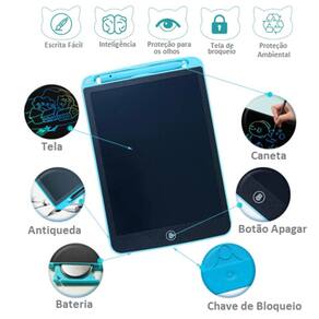 Leve e portátil. O produto conta com sua própria caneta sem a necessidade de usar giz ou canetões.