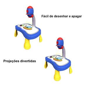 Linda mesinha com projetor de desenhos. Com projetor acoplado, acompanha 3 discos de desenhos para projetar as ilustrações. Acompanha também papel e canetinhas coloridas com apagador acoplado para a brincadeira ficar completa. Possui mecanismo liga/desliga e controle para ajustar a nitidez da projeção. Com esta mesa divertida, os pequenos podem soltar a imaginação e desenvolver habilidades que contribuem para a sua formação e criatividade.