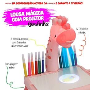 - Estimule o aprendizado e a diversão das crianças com a Lousa Mágica Mesinha Com Projetor Girafinha - Rosa!