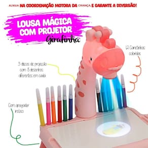 - Estimule o aprendizado e a diversão das crianças com a Lousa Mágica Mesinha Com Projetor Girafinha - Rosa!