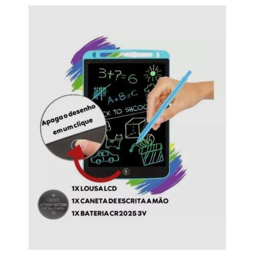 ATENÇÃO: A lousa vem com trava para você NÃO APAGAR SEM QUERER seus desenhos, rascunhos e textos. Caso você não consiga limpar a tela, por favor cheque se a trava não está ativa.