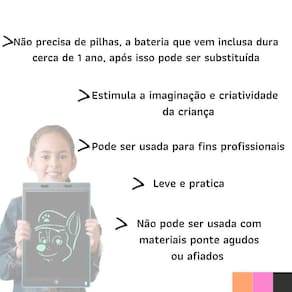 Lousa Mágica Tablet Infantil Tela Lcd Escrever E Desenhar Cor: Laranja Chegou o brinquedo Lousa Mágica de LCD Desenvolvida para o seu pequeno despertar a imaginação e habilidades incríveis desenhando Se você tem um pequeno artista em casa ou até mesmo uma forma de estimular e desenvolver a criança treinar caligrafia, desenhos e jogos que são super divertidos você precisa adquirir uma lousa magica. Crianças precisam sair do celular e brincar aprendendo conteudos proprios para a idade delas, concordam papais e mamães Um presente super divertido que tem benefícios educacionais. Sobre a lousa magica : - A lousinha magica tem um tamanho legal de 21 x 14 cm e proporciona fazer desenhos grandes. - Fácil de Apagar e se divertir muuuito Fala sério, demais né Ela já vai com a caneta própria para desenhar e escrever nela. Material: Plástico e metal Idade recomendada: 3 + anos Tamanho: 21 x 14 x 2,0 cm comp. X larg. X alt. Para Você papai e mamãe com certeza vai bater uma nostalgia e vão relembrar a velha infância Itens Inclusos: 01 Lousa de desenho Mágica LCD; 01 Caneta Mágica. Tags:Lousa, brincadeira, escolinha, lousa magica, com caneta, desenho, infantil, relembrar, mágica, brincando, Desenhando, desenho, apaga, facil, canetinha, grande, plastico, criatividade, coordenação motora;Homologação Inmetro: IP-BRI-1301/2022-45