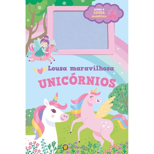 Desenhe mágicos unicórnios! "Lousa maravilhosa" é uma coleção para que as crianças aprendam desenhando, apagando e desenhando de novo. Com lousa e caneta magnéticas.