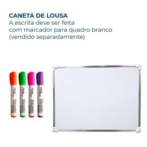 Essa lousa branca é ideal para organizar tarefas e lembretes Com seu design prático possui uma superfície ideal para escrever com marcador e apagar sem problemas. Organize tarefas, crie lembretes, anotações e listas de forma fácil e divertida Em seu verso, possui dois suportes para fixação com pregos ou ganchos. Ultra leve e portátil Sua moldura é de ferro e possui cantoneiras de plástico com pontas arredondadas para evitar machucados. Produto de ótima qualidade e material ultra resistente.