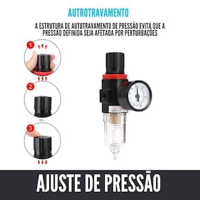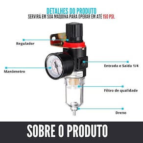Este filtro regulador é perfeito para ser utilizado em compressores, máquinas de pintura e outros usos industriais. Com ele, você terá um ar mais limpo e seco, garantindo um melhor desempenho e maior vida útil do seu equipamento.