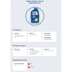 Mobil Super 2000 X1 15W-40 é um óleo semissintético multiviscoso premium de última geração formulado especialmente para proporcionar um excelente nível de proteção ao motor reduzindo a tendência de formação de borra de oxidação e vernizes promovendo o baixo consumo de óleo e protegendo o motor por períodos prolongados. Mobil Super 2000 X1 15W-40 é um óleo de desempenho superior que excede os padrões requeridos pela indústria automotiva para motores de carros de passeio movidos a gasolina, etanol ou GNV respeitando as recomendações dos fabricantes de veículos.