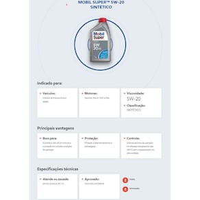 Mobil Super 3000 Formula F 5W-20 é um óleo totalmente sintético que fornece uma maior vida útil para diversos tipos e idades de motores oferecendo maior proteção nas variadas condições de operação. Mobil Super 3000 Formula F 5W-20 fornece excelente proteção contra a formação de depósitos, a ferrugem e a corrosão do motor em condições severas de operação e em baixas temperaturas e proporciona ótima viscosidade e fluidez para operação em uma ampla faixa de temperatura.