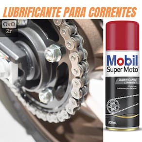 Mobil super moto chain lube é um óleo, disponível na forma de spray, desenvolvido para lubrificar correntes de motocicletas.