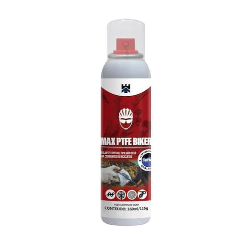 Max ptfe biker lubrificante seco indicado para a lubrificação de correntes de bicicletas. Sua formula possui rápida evaporação, formando um filme branco sintético que proporciona maior durabilidade na limpeza da corrente evitando a absorção de areias, poeiras e outros contaminantes.