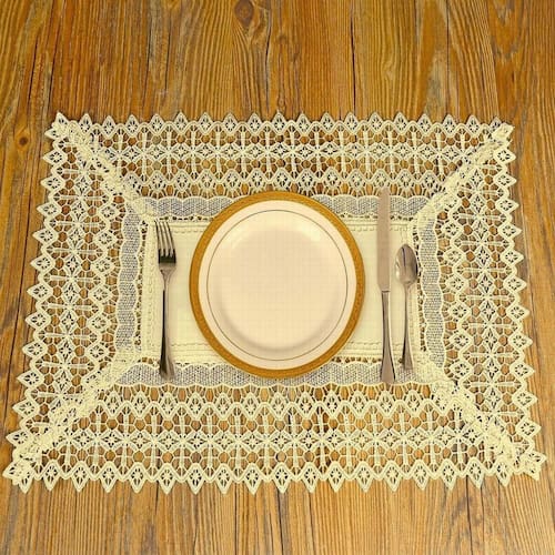 trata-se de uma mesa com pratos, talheres, copos e objetos decorativos organizados para uma determinada refeição, que pode ser café da manhã, brunch uma refeição servida entre o café da manhã e o almoço, que costuma substituir ambas refeições , almoço, café da tarde ou jantar. O lugar americano paris é feito com uma barra em guipir na cor bege que combinará com sua decoração. Pode ser utilizado como lugar americano, como toalha de bandeja ou de várias outras formas na decoração da casa. Trabalhado com renda de guipir no mesmo tom, deixando o mais delicado e moderno. Na lepin enxovais você encontra a maior variedade de produtos em cama, mesa e banho com os melhores preços e condições do mercado e entrega rápida para todo o brasil. Perguntas e respostas: