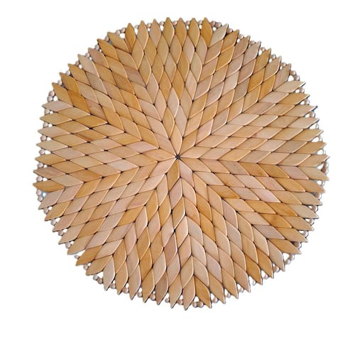 Este lugar americano redondo é uma peça única, feita por artesãos do Estado do Ceará, Brasil. Ele é confeccionado a partir de madeira de alta qualidade, garantindo durabilidade e resistência ao uso diário. As pecinhas de madeira envernizadas acrescentam um toque extra de elegância e sofisticação ao produto.