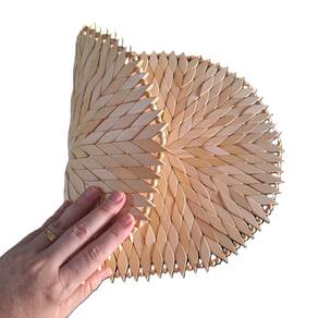 Lugar americano OVAL confeccionado em madeira, composto por peças pintadas e envernizadas, em formato de losângulo, com acabamento nas bordas.