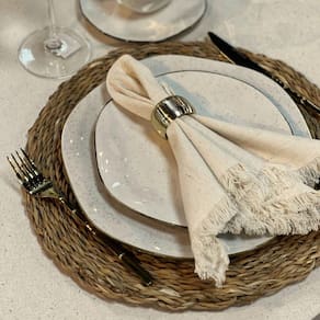 Elegância Duradoura: O design trançado realça a textura das fibras naturais, criando uma peça sofisticada que valoriza qualquer composição de mesa. Um toque de natureza para momentos especiais.