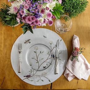 O Lugar Americano Redondo Ricamo Alba valoriza a decoração da mesa com charme e acabamento refinado. Seu design elegante, toque suave e formato redondo criam composições que impressionam.
