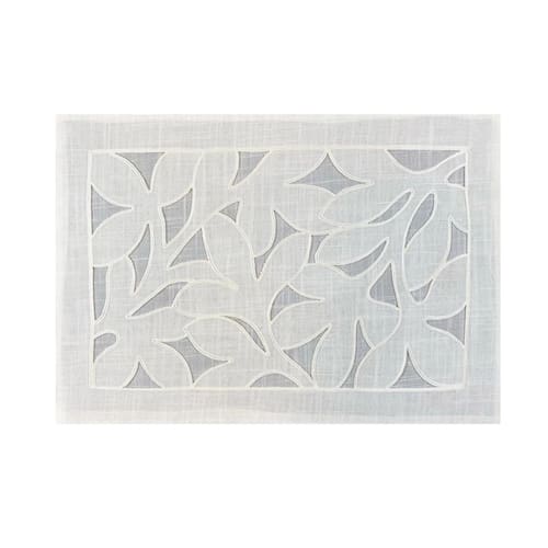 Lugar Americano Retangular Em Tecido Poli-Linho Ricamo 50x35cm Auguri Casa Marmi Branco -