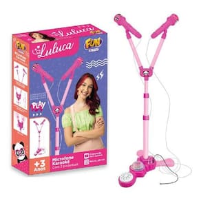 Luluca Microfone Com 2 Pedestais e Conector De Celular Fun. Com esse microfone, você vai cantar as músicas que mais gosta. O microfone vem com 2 pedestais para você se divertir com quem quiser, tem incríveis luzes de led, alto-falantes, conector para microfone, Mp3 e celular (não incluso), para você cantar como uma estrela da música!