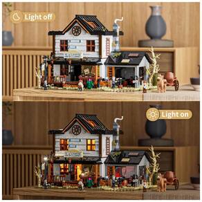 A forja Wild West Blacksmith (Old West Blacksmith L9089) utiliza 2042 peças e inclui sistema de iluminação com 8 pontos de LED e 4 barras de luz, destacando fornalha com efeito de “fogo respirando” e múltiplas lanternas internas e externas. A maquete simula todo o processo de ferraria com fole, bigorna, pedra de amolar, áreas de têmpera e resfriamento, além de zonas funcionais claramente definidas e acesso traseiro de grande abertura para visualização do interior.?