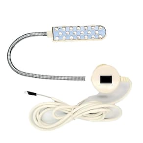 Luminária bivolt com 20 LEDs NEON, pode ser fixada em qualquer superfície metálica pois possui um imã de alta fixação, a haste flexível permite um melhor direcionamento da luz, pode ser utilizada em máquinas de costura, bordado e demais equipamentos e utilizações.