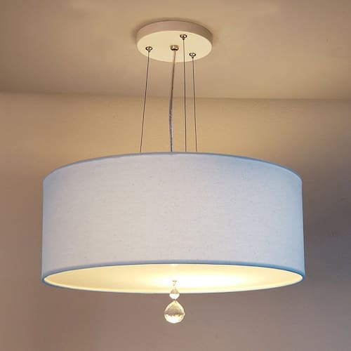 O pendente é indicado para ambientes internos e pode ser instalados em salas de estar ou jantar, quartos, escritórios, etc. Além de atribuir maior personalidade ao ambiente esse modelo também propicia um espaço mais acolhedor por meio da sua iluminação delicada e difusa. Acabamento: PET Flexível Acompanha Cúpula: Sim Acompanha Lâmpada: Não Altura: 15 Altura Regulável: Sim Ambiente de Iluminação: Interno Ambiente Principal: Sala de Jantar Complexidade da Montagem: Baixa: pode ser montado por uma pessoa sozinha Comprimento: 50 Comprimento do Cabo: 120 Cor: Azul-bebê Cor do Acabamento: Azul Cor do Produto: Azul-bebê Cor Predominante: Azul Diâmetro: 50 Formato: Cilindrico Largura: 50 Linha ou Coleção: Lili Material da Cúpula: PSAI de Alto Impacto Material Principal: Tecido Medida da Canopla (A x D): 0,5x12cm Medida da Cúpula (A x D): 15x50 Necessita Montagem: Não Origem do Produto: Nacional Peso: 1.42 Possui Braços: Não Possui Cristal: Não Potência: 15 Potência Máxima da Lâmpada: 15 W Profundidade: 50 Quantidade de Itens: 1 Quantidade de Lâmpadas: 3 Soquete: E-27 Tipo de Cristal: K9 Tipo de Luminária: Pendente Voltagem: Bivolt Ean: 7899679216446