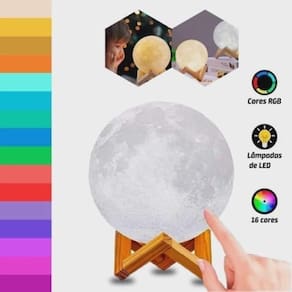 Luminária Lua Cheia 3D: Iluminação Celestial para o Seu EspaçoTransforme seu ambiente com a Luminária Lua Cheia 3D, uma peça encantadora que une o charme da lua à tecnologia moderna, proporcionando uma experiência de iluminação única. Com seu design elegante e funcionalidades versáteis, esta luminária traz um toque de magia e serenidade a qualquer espaço.Descrição:Material: Fabricada em PVC e ABS, garantindo durabilidade e segurança para o uso diário.Tamanho: Mede 19 cm de diâmetro, oferecendo uma representação delicada e realista da Lua Cheia.Fonte de Alimentação: Funciona com bateria, proporcionando praticidade e portabilidade.Características Principais:Design Lunar Encantador: Inspirada na beleza mágica da lua, esta luminária cria um ambiente celestial e relaxante, ideal para momentos de descanso.Conectividade USB: Pode ser facilmente conectada a laptops, carregadores USB e power banks, permitindo flexibilidade no uso e criando um espaço mágico em qualquer lugar.Iluminação RGB Personalizável: Oferece uma variedade de cores vibrantes, permitindo que você ajuste a atmosfera ao seu gosto e necessidade.Troca de Cor por Toque: Ajuste as cores da luz com um simples toque na superfície da lua, proporcionando uma experiência interativa e divertida.Decoração Versátil: Ideal para quartos, salas de estar e escritórios, adicionando uma atmosfera única e acolhedora em qualquer ambiente.Portabilidade Prática: A alimentação USB facilita o transporte, permitindo criar uma atmosfera mágica onde você estiver.Especificações Técnicas:Conexão: USBTroca de Cor por Toque: SimCores: Variedade de opções RGBFonte de Alimentação: USB (tomada não inclusa)Material: PVC e ABS de alta qualidade e durabilidadeItens Inclusos no Pacote:1 Luminária Lua Cheia1 Cabo USB1 Suporte para a LuaA Luminária Lua Cheia 3D é perfeita para relaxar em casa ou criar uma atmosfera especial em eventos. Com sua iluminação personalizada e design celestial, ela transforma qualquer espaço em um oásis de beleza e tranquilidade. Adicione um toque de magia ao seu ambiente com esta luminária única e surpreenda-se com sua versatilidade!