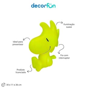 A luminosidade da Luz Mágica é ajustável, permitindo que você crie a atmosfera ideal para diversos momentos, desde um relaxante fim de tarde até uma animada reunião com amigos. O design lúdico do Snoopy e de seu fiel companheiro Woodstock traz um toque de nostalgia, que seguramente irá encantar tanto crianças quanto adultos.