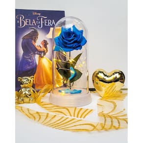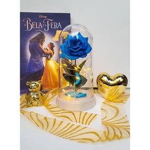 Luminária a rosa encantada azul 20 cm base pérola quente