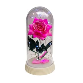 Luminária a rosa encantada rosa rosa 20 cm base pérola frio