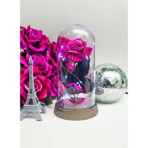 -luminária com 10 cm de diâmetro por 20 cm de altura; -cúpula de acrílico translúcido; -base de plástico; -micro luzes de leds, luzes de fadas, branco frio atual , funcionam com pilhas ou baterias já inclusas ; -rosa artificial idêntica a natural e dura mais de 100 anos dentro da cúpula, é eterna ;
