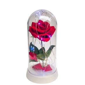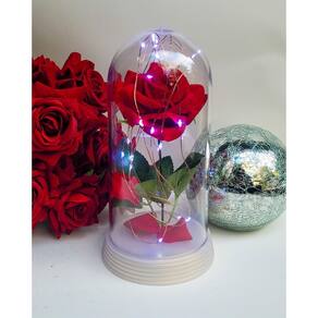 Luminária a rosa encantada vermelha 20 cm base pérola frio