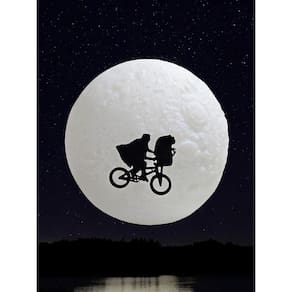 Luminária abajur de mesa 3d lua et filme led enfeite grande Cor lua branca com et Tamanho grande Material polietileno Luminária abajur de mesa 3d lua et filme led enfeite grandeuma das cenas mais icônicas do cinema transformada em lumináriao clássico e.T. - o extraterrestre marcou gerações e agora sua cena mais inesquecível - a bicicleta voando diante da lua cheia - ganha vida nesta luminária incrível ideal para fãs nostálgicos e novas gerações, ela traz um toque especial à decoração, combinando emoção e estilo cinematográfico.Principais características:- design exclusivo e licenciado - produto oficial universal studios, fiel à icônica cena do filme.- iluminação aconchegante - lâmpada led inclusa, garantindo uma luz suave e envolvente.- material resistente e leve - produzida em polietileno de alta qualidade, unindo durabilidade e elegância.- bivolt automático - funciona tanto em 110v quanto em 220v, sem necessidade de adaptadores.- fácil de usar - cabo de 1,8m com para praticidade no dia a dia.Especificações técnicas:- material: polietileno e componentes eletrônicos- dimensões: 22cm altura x 23cm largura x 23cm profundidade - peso: 0,600kg- tensão: bivolt 110v/220v - lâmpada: led ou fluorescente compacta até 15w acompanha lâmpada led - cabo: 1,8m com liga/desligaleve a magia do cinema para a sua casa com essa luminária fascinante ideal para presentear fãs do filme ou decorar ambientes com um toque especial de nostalgia e ficção.Tags: luminária et, abajur lua et, luminária decorativa, iluminação temática, luminária 3d et, abajur geek, decoração nerd, abajur et extraterrestre, luminária de mesa led, luminária oficial universal, presente para fãs de cinema, luminária lua cheia, iluminação nostálgica, decoração vintage, luminária criativa, abajur moderno, iluminação aconchegante.