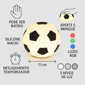 Luminária Abajur De Mesa Grande Bola De Futebol Preto Luminária Infantil Bola de Futebol - Luz Decorativa LED Transforme o quarto das crianças com esta divertida luminária em formato de bola de futebol Produzida em material resistente e de alta qualidade, ela oferece iluminação suave e aconchegante, ideal para noites tranquilas. Com design moderno e acabamento detalhado, é perfeita para decorar ambientes infantis, salas de jogos ou presentear pequenos fãs de futebol. Características: Formato: Bola de Futebol Iluminação LED de baixo consumo Luz suave, ideal para uso noturno Design lúdico e decorativo Fácil de limpar e transportar Luzes RGB para variar as cores Garanta já a sua e deixe o ambiente mais alegre e aconchegante O produto é novo Sim, todos os produtos são novos. Caso o produto não supra minha necessidade posso devolver ou trocar O produto tem Sim, todos os produtos têm . Se ainda houver alguma dúvida estamos a disposição para responder de segunda-feira a sexta-feira das 08:00 às 17:30. Marca: Não Informado
