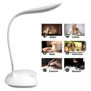 Luminária Abajur Escritório/quarto Flexível Recarregável Usb - Cor: Branco