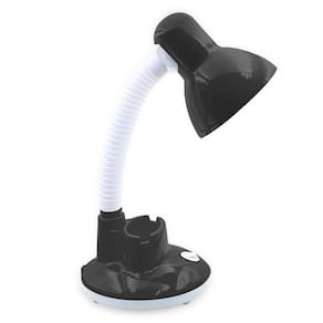 - Produto: Luminária de mesa com base porta acessórios e interruptor. - Medida: 35 centímetros. - Cabo: 1 metro. - Fonte: Tomada de dois pinos. - Bocal: E-27 padrão (lâmpada comum) - Lâmpadas: Qualquer uma de até 40 watts - Cor: Preto - Tensão: 110v - 220v (BIVOLT)