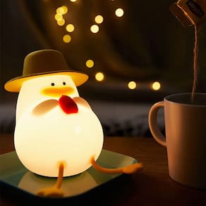 Feita de silicone macio e lavável, livre de BPA, esta luminária é segura para manuseio, permitindo que os pequenos a apertem sem preocupações.