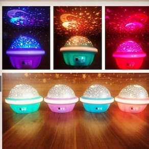 Ótima iluminação para quartos das crianças no ambiente noturno ou festa. Enfeite em geral. Perfeito para enfeitar um cômodo durante a noite. Ilumina Parede e Teto Quando a luminária for conectada via USB, pode se transformar num abajur normal, Removendo a tampa estelar. A luminária possui os modos seguintes ou cores: - Vermelho; - Verde; - Azul; - Vermelho com azul; - Verde com azul; - Verde com vermelho; - 3 cores juntos; Botão A - liga e desliga a luz Botão B - opções de cores da projeção 4 principais cores + duplas de cores + trio de cores Botão C - liga e desliga a rotação Tampa semi-transparente - podendo usar a luminária com ou sem a tampa, fazendo o céu estrelado ou apenas usando como luminária Não esquenta, mesmo com o uso a noite toda Tamanho: 10.8 x 9.5 x 9.5 centímetros Material: ABS Fonte de energia : 4x Pilhas AAA- palito- não incluso ou cabo USB incluso ;