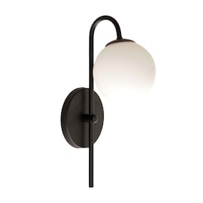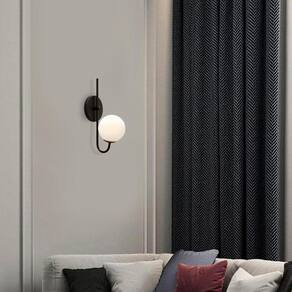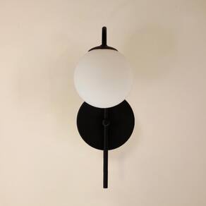 Tudo para iluminar seu ambiente com muito charme Perfeito para todos os ambientes Modelo: arandela Cor es : preto Material: alumínio Canopla de parede: alumínio 12cm Globo de vidro opalino: 12cm Luminária: 1 soquete g9 Número de lâmpadas: 1 lâmpadas não inclusas Voltagem: 127v/220v Medida: 34 x 8 cm Peso líquido: 0,2 kg Conteúdo da embalagem: 1 luminária de parede