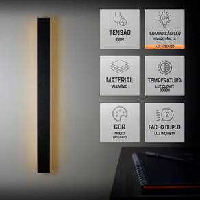 Luminária Arandela Led Slim Linear 72Cm Indireta 220V Preto