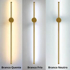 ESPECIFICAÇÕES: Comprimento: 60cm. Largura: 10,4cm. Cor: Dourado. Potência: 8-24w x2. LED Driver 3 Cores 8-24W x2. 48 Watts. Com proteção contra curto-circuito. Temperatura de cor: branco quente, branco frio, branco neutro. Material: Metal e silicone. Tensão: 110v / 220v Bivolt . Medidas da caixa: 64 x 15 x 6cm. Peso total: 450g. Marca: Gimpo. Modelo: KJBD-171-GOLD. EAN: 7898680303763.