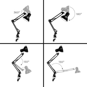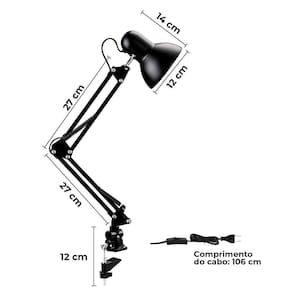 - a luminaria articulada de mesa possui um clip ajustável que pode ser fixado, proporcionando firmeza em qualquer local que for instalada