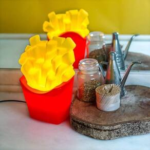 Luminária Batata Frita Usare Vermelho e Amarelo. A luminária Batata Frita, linda e deliciosamente livre de gordura trans! ;) Perfeita para decoração de ambientes descolados e como presente para food lovers! Utiliza lâmpada fluorescente compacta de até 12W (não inclusa). Cabo com interruptor medindo 1,7 m.