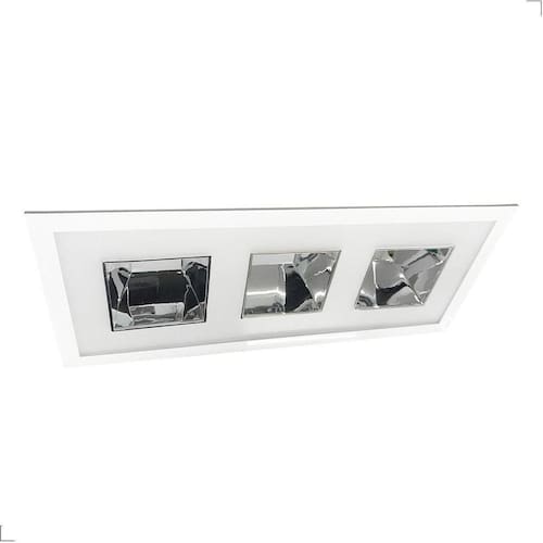 Spot Embutido Triplo Facho Painel Luminária 4Xe27 Branco da marca Bonin. Referência: 8062 Branco. Quantidade de Lâmpadas: 4x. Base: E27. Potência Máx: 25W. Tensão: 127-220V. Cor: Branco. Dimensões: 46,5x20 cm.