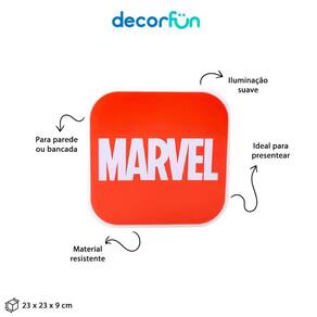 Perfeita para sua decoração, a Luminária Box Red Icon Marvel, vai encantar seu quarto, aquele seu cantinho especial ou o ;seu escritório. Essa luminária vai agregar no seu espaço de leitura por ser uma luz difusa, o que não agride a visão, além de deixar o local com uma iluminação mais baixa. Sendo bivolt com a Luminária Box Red Icon Marvel, você não precisa se preocupar com nada, basta ligar na tomada e ligar.