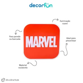 Perfeita para sua decoração, a Luminária Box Red Icon Marvel, vai encantar seu quarto, aquele seu cantinho especial ou o ;seu escritório. Essa luminária vai agregar no seu espaço de leitura por ser uma luz difusa, o que não agride a visão, além de deixar o local com uma iluminação mais baixa. Sendo bivolt com a Luminária Box Red Icon Marvel, você não precisa se preocupar com nada, basta ligar na tomada e ligar.