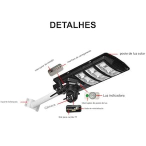Instalação simples, a câmera é conetada a luminária solar e ambas são alimentadas pela placa solar, sem necessidade de cabeamento elétrico.
