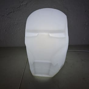Luminária Capacete Homem de Ferro Neutro Esta luminária do Homem de Ferro vai trazer um toque super descolado para a sua decoração A cúpula branca e a estrutura também branca dão um visual moderno e estiloso. Feita de polietileno resistente, é perfeita para iluminar o ambiente com aquele toque geek. Com design único, esta luminária vai ser o destaque do seu cantinho